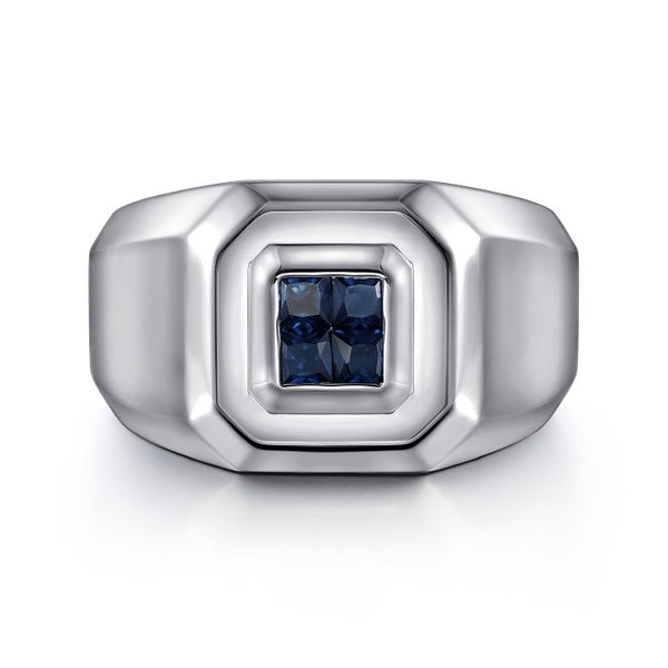 925 Sterling Silver Signet Ring with Princess Cut Sapphires J.A. Jewelers & Company, Inc. FARMINGTON, NM