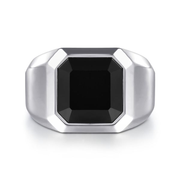 Wide 925 Sterling Silver Signet Ring with Faceted Onyx Stone in High Polish Finish J.A. Jewelers & Company, Inc. FARMINGTON, NM