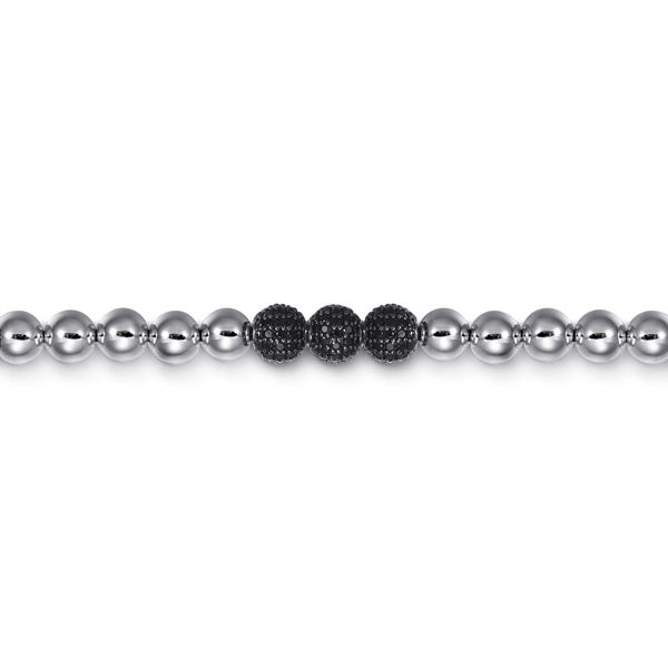 925 Sterling Silver Black Spinel and 6mm Silver Beaded Mens Bracelet Image 2 J.A. Jewelers & Company, Inc. FARMINGTON, NM