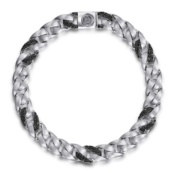 925 Sterling Silver Black Spinel Cuban Link Chain Mens Bracelet J.A. Jewelers & Company, Inc. FARMINGTON, NM