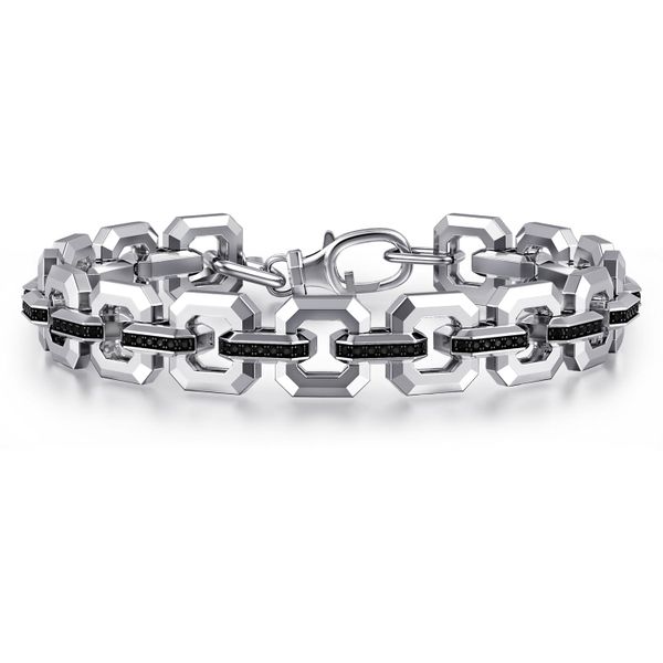 Sterling Silver Men's Link Chain Tennis Bracelet with Black Spinel Connectors J.A. Jewelers & Company, Inc. FARMINGTON, NM