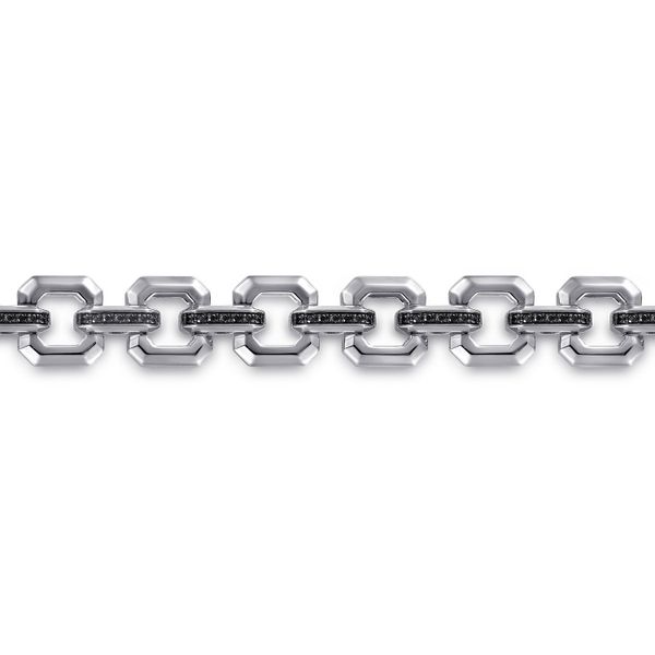 Sterling Silver Men's Link Chain Tennis Bracelet with Black Spinel Connectors Image 2 J.A. Jewelers & Company, Inc. FARMINGTON, NM