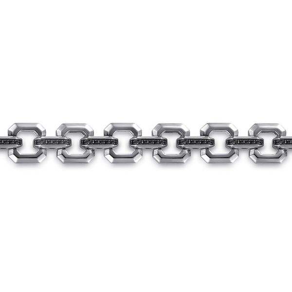 Sterling Silver Men's Link Chain Tennis Bracelet with Black Spinel Connectors Image 2 J.A. Jewelers & Company, Inc. FARMINGTON, NM