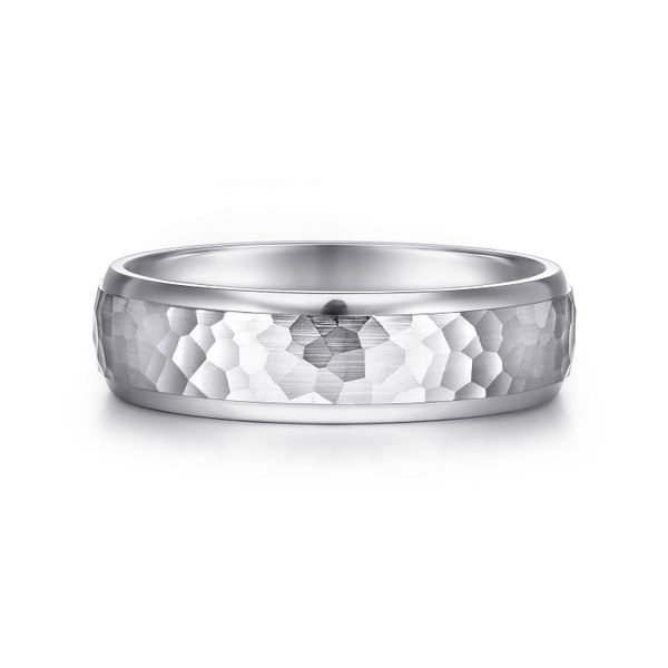 14K White Gold 6mm - Hammered Finish Men's Wedding Band