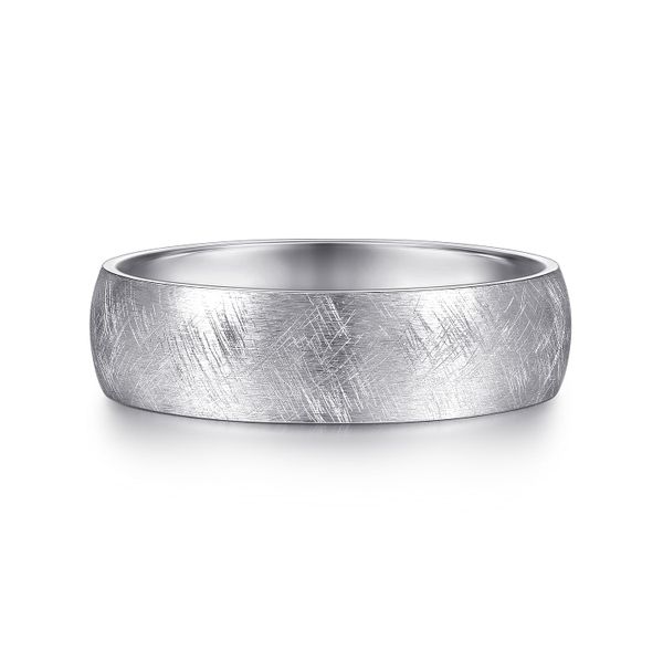 14K White Gold 6mm - Men's Wedding Band in Diamond Brush Finish