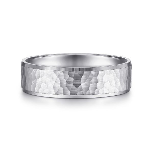 14K White Gold 6mm - Men's Wedding Band in Hammered Finish