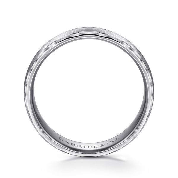 4. 14K White Gold 6mm - Satin Finish Men's Wedding Band with Carved Edge
