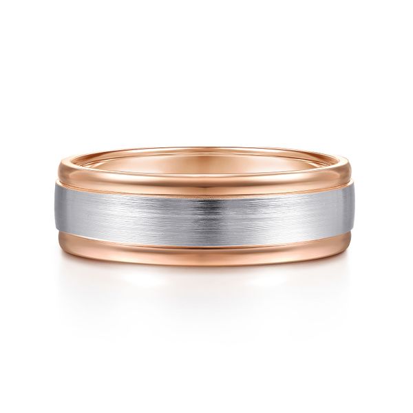 14K White-Rose Gold 7mm - Two Tone Men's Wedding Band in Satin Finish