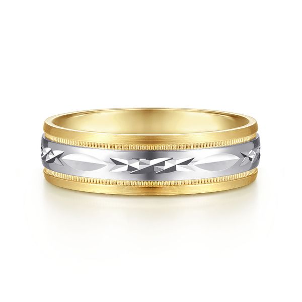 14K White-Yellow 6mm - Engraved Men's Wedding Band in Satin Finish