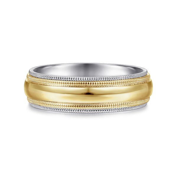 14K White-Yellow Gold High Polish Men's Wedding Band with Milgrain Edge