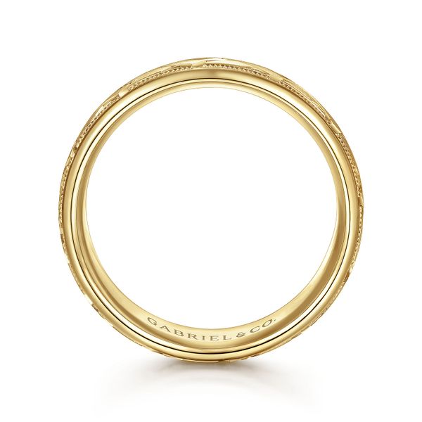 14K Yellow Gold 7mm - Engraved Woven Men's Wedding Band in Satin Finish