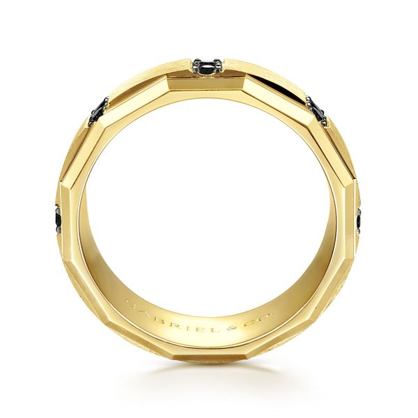 14K Yellow Gold Black Diamond Men's Wedding Ring in Satin Finish Image 2 J.A. Jewelers & Company, Inc. FARMINGTON, NM