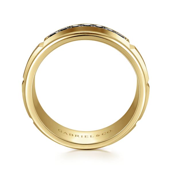 14K Yellow Gold Black Diamond Men's Wedding Ring in Satin Finish Image 2 J.A. Jewelers & Company, Inc. FARMINGTON, NM