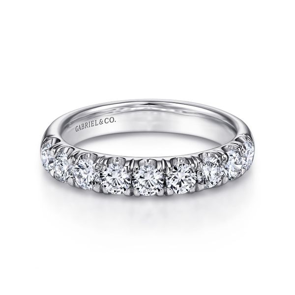 14K White Gold 9 Stone French Pavé Diamond Wedding Band