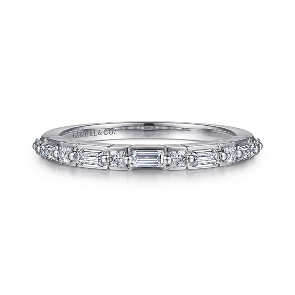 4. 14K White Gold Baguette and Princess Cut Diamond Anniversary Band