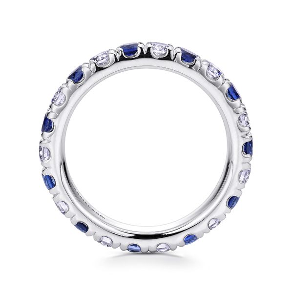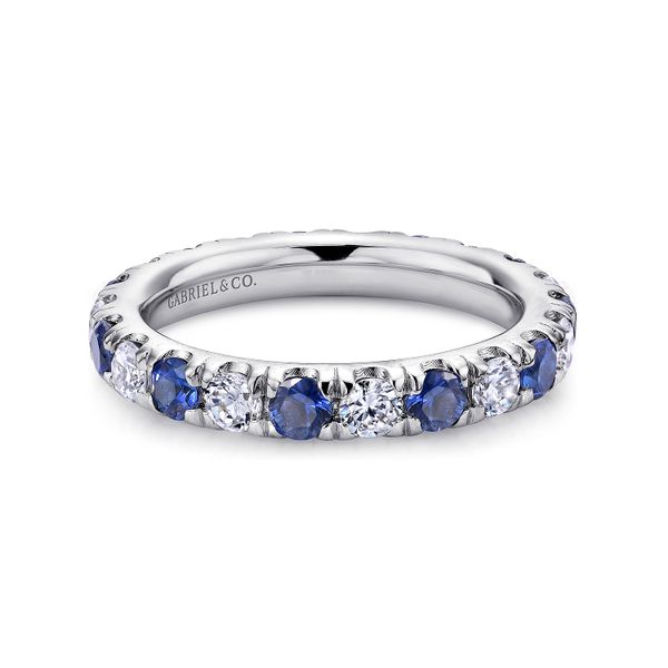 14K White Gold French Pavé Set Sapphire and Diamond Eternity Band