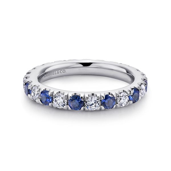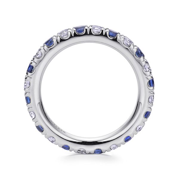 14K White Gold French Pavé Set Sapphire and Diamond Eternity Band