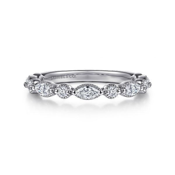 14K White Gold Vintage Inspired Marquise and Round Diamond Anniversary Band