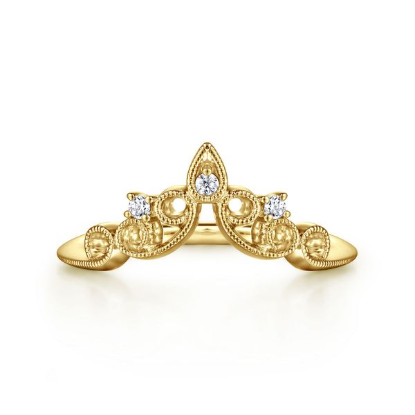 14K Yellow Gold Curved Filigree Diamond Ring