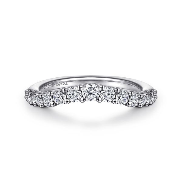 Curved 14K White Gold Shared Prong Diamond Wedding Band