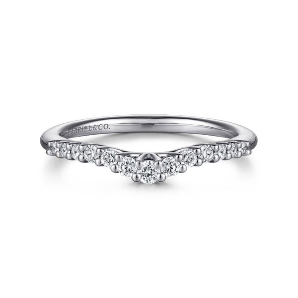 Curved 14K White Gold Shared Prong Diamond Wedding Band