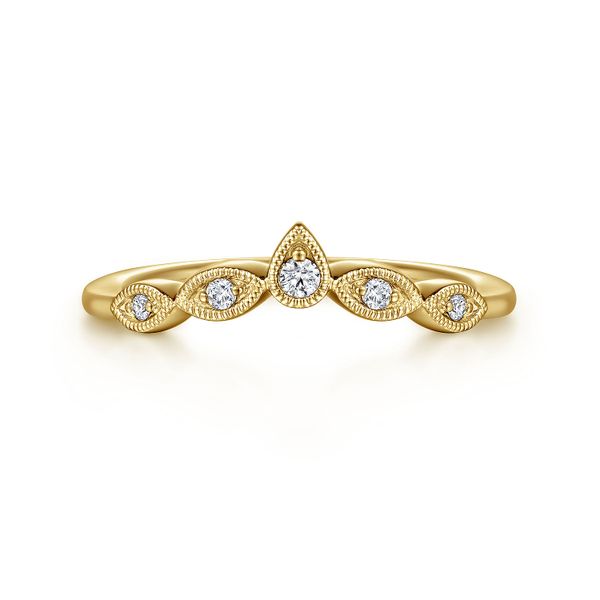 Vintage Inspired 14K Yellow Gold Curved Gold Diamond Anniversary Band