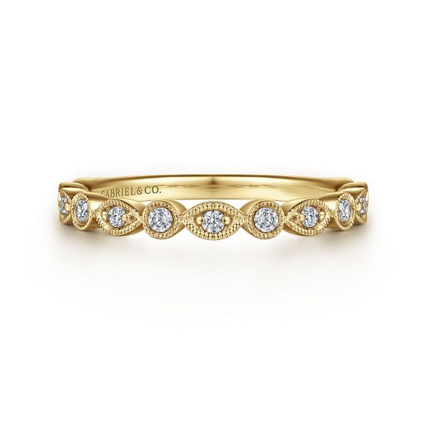 Vintage Inspired 14K Yellow Gold Marquise and Round Station Diamond Anniversary Band