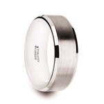 ANTARES White Tungsten Brushed Center Men’s Wedding Ring with Polished Beveled Edges & White Interior - 8mm