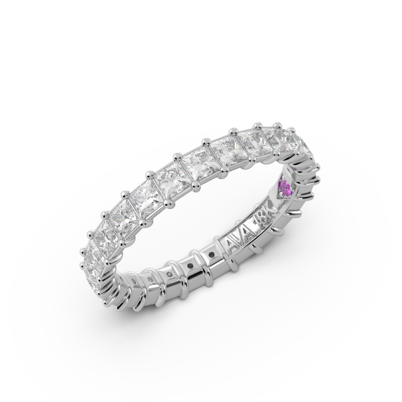14K White Gold Bezel Set Emerald Cut and Round Diamond Anniversary Band